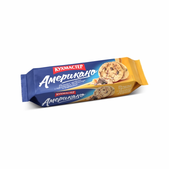 Печенье КУХМАСТЕР «Американо» – сдобное, рассыпчатое, тающее, с кусочками настоящего шоколада, это печенье просто завораживает сладкоежек! При производстве печенья используются натуральные продукты.