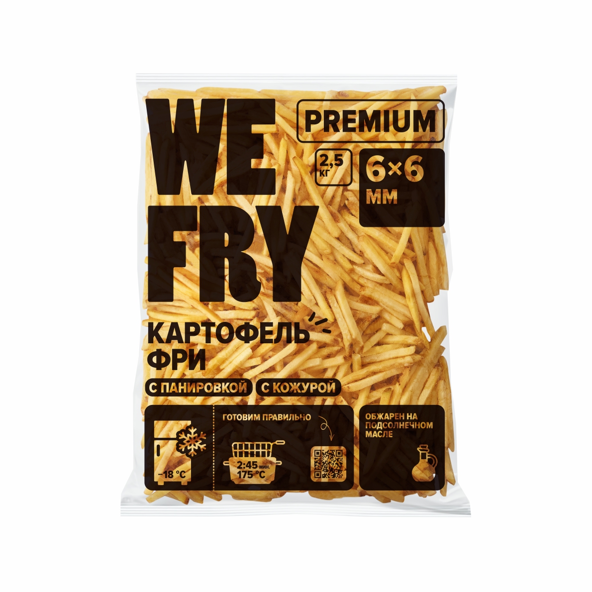 Картофель фри 6/6 в панировке с кожурой PREMIUM Fry Me 2.5кг 1/5 S22