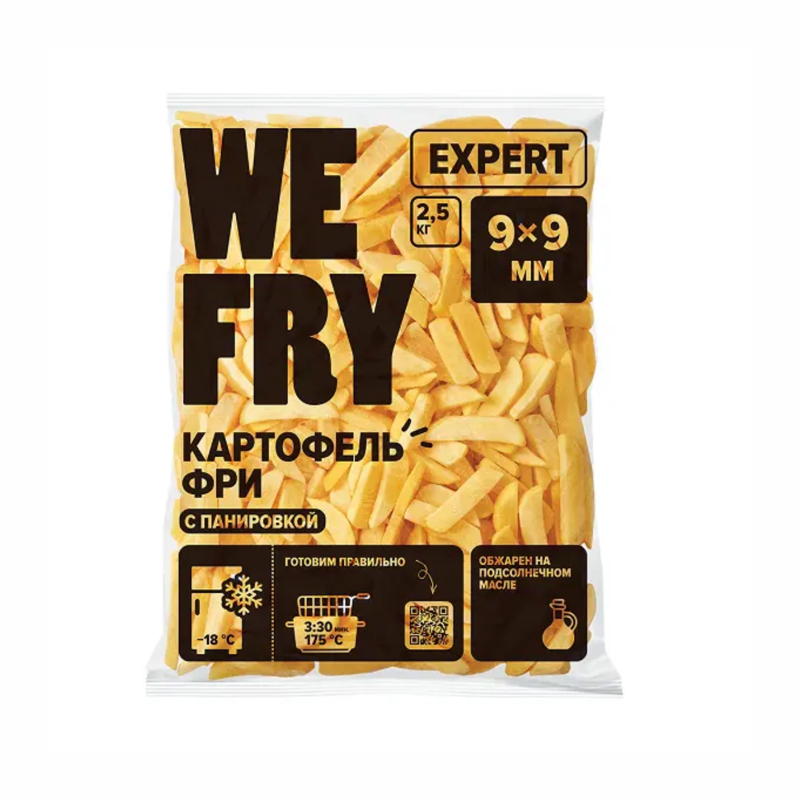 Сочетание длины и формы отлично подойдет для ресторанов быстрого обслуживания и доставки. Насыщенный вкус картофеля, золотистый цвет, хрустит даже остывшим. Рекомендации по приготовлению готового блюда во фритюре: примерно 3 минуты 15 секунд при температуре масла 175 °С.