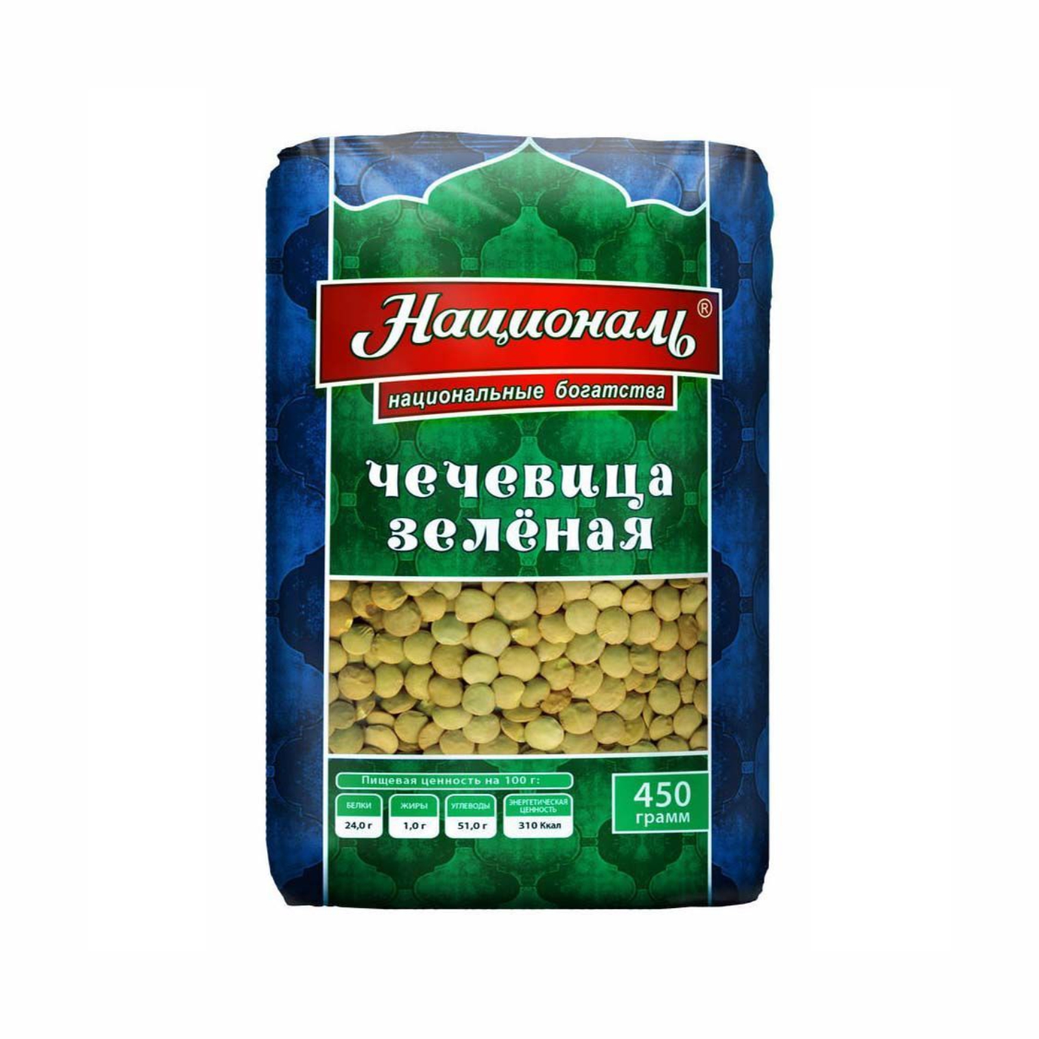 Чечевица зеленая Националь 450 гр 1/6 Россия 540ДНЕЙ