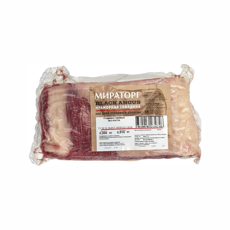 Говядина Грудинка Брискет б/к с/м в/у Black Angus Мираторг 1/~16кг .россия