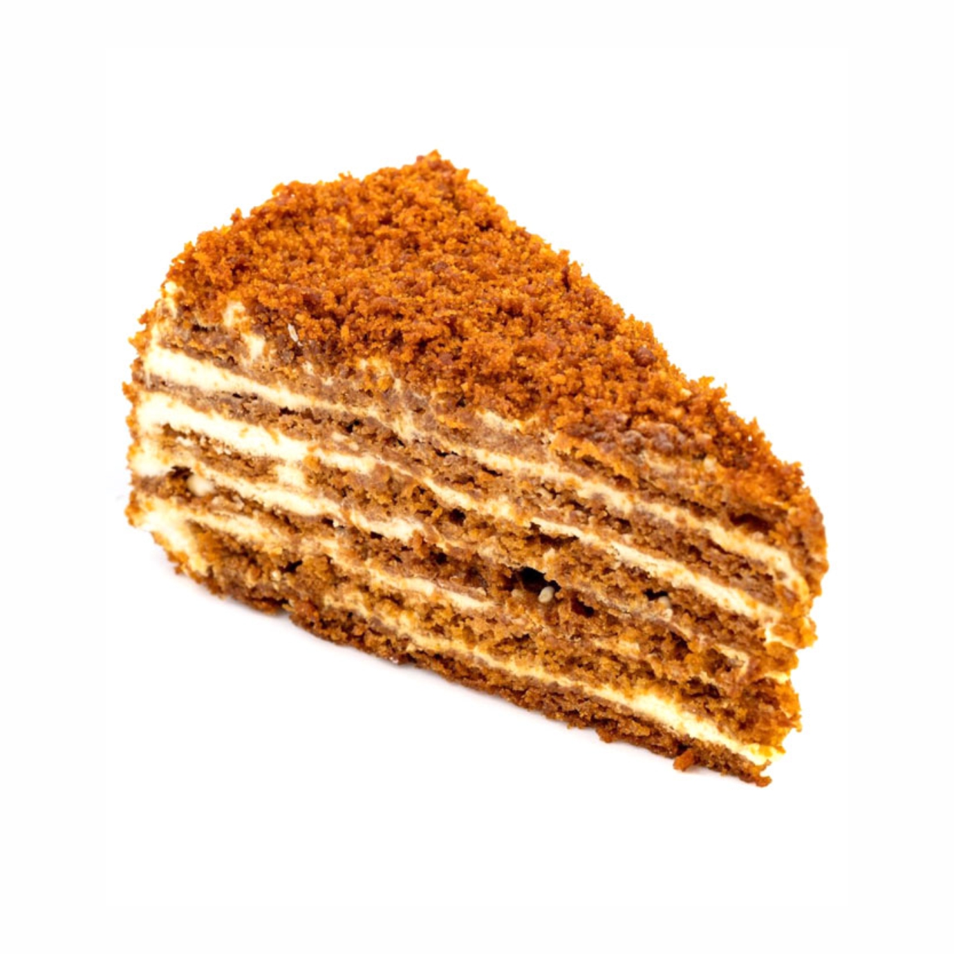 Торт Медовик ПитерФрост: Нежные медовые коржи, пропитанные медовым сиропом и прослоенные кремом из деревенской сметаны. Состав: Сметана, мука пшеничная в/с, вода питьевая, сахар-песок, мед цветочный, яичный меланж, маргарин, сода пищевая, уксус 9%, ароматизатор, мед. Рекомендации по дефростации: при комнатной температуре - 3 ч; при температуре 4±2°С - 4 ч.
