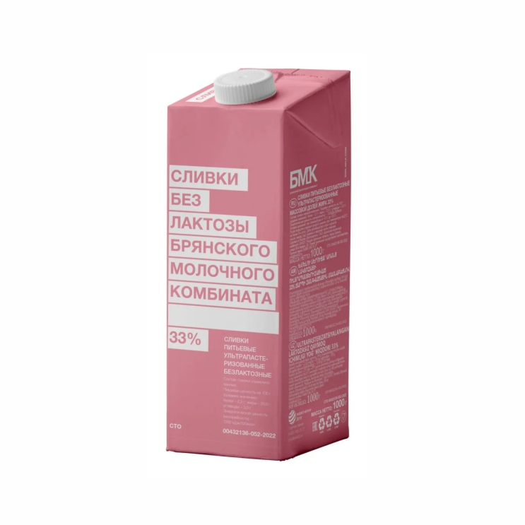 Сливки 33% безлактозные БМК Edge 1кг 1/12 Россия