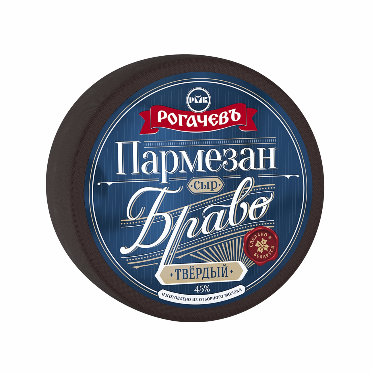 Твердый сыр «Пармезан» бренда «Рогачевъ» имеет плотную текстуру и светло-желтый цвет со множеством кремовых вкраплений. Продукт с ярким пряным ароматом, сложным и насыщенным вкусом обладает терпким островатым послевкусием. Сыр этого сорта отличается низким содержанием холестерина, поэтому подойдет людям, которые следят за фигурой или придерживаются в питании принципов ЗОЖ.