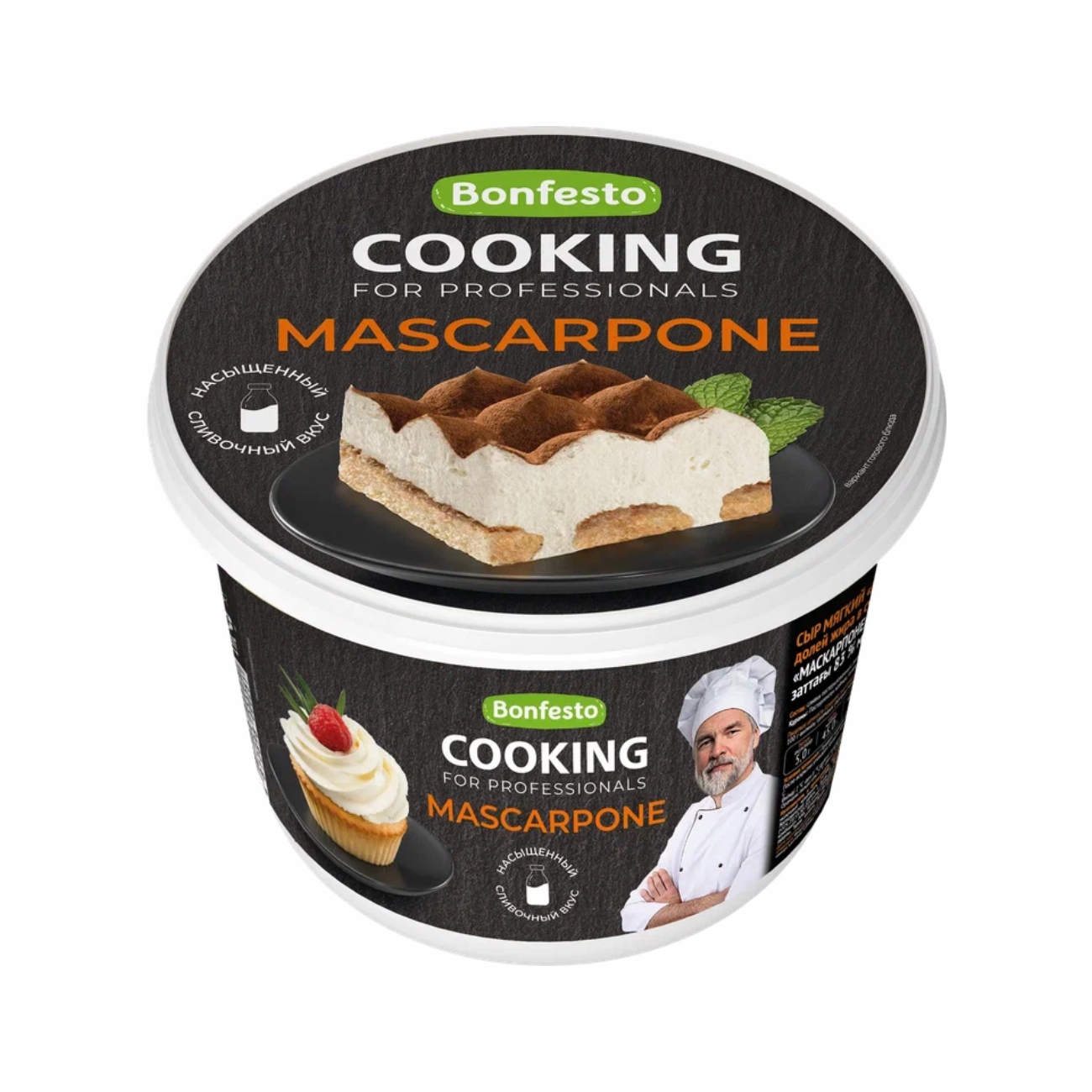 Мascarpone – традиционный итальянский мягкий сыр, полученный методом ультрафильтрации сливок. Имеет кремообразную консистенцию и нежный сладковатый вкус. Именно эти качества делают его идеальным сыром для десертов. Он хорошо сочетается с фруктами и ягодами, особую изысканность приобретает в сочетании с тертым горьким шоколадом. Наибольшую известность среди гурманов маскарпоне получил как основной компонент знаменитого итальянского десерта «Тирамису». Представленный в большой, вместительной и удобной упаковке 500 гр Mascarpone Cooking ориентирован на удовлетворение потребностей представителей сегмента HoReCa, профессиональных шеф-поваров, а также на использование продукта в кулинарии.