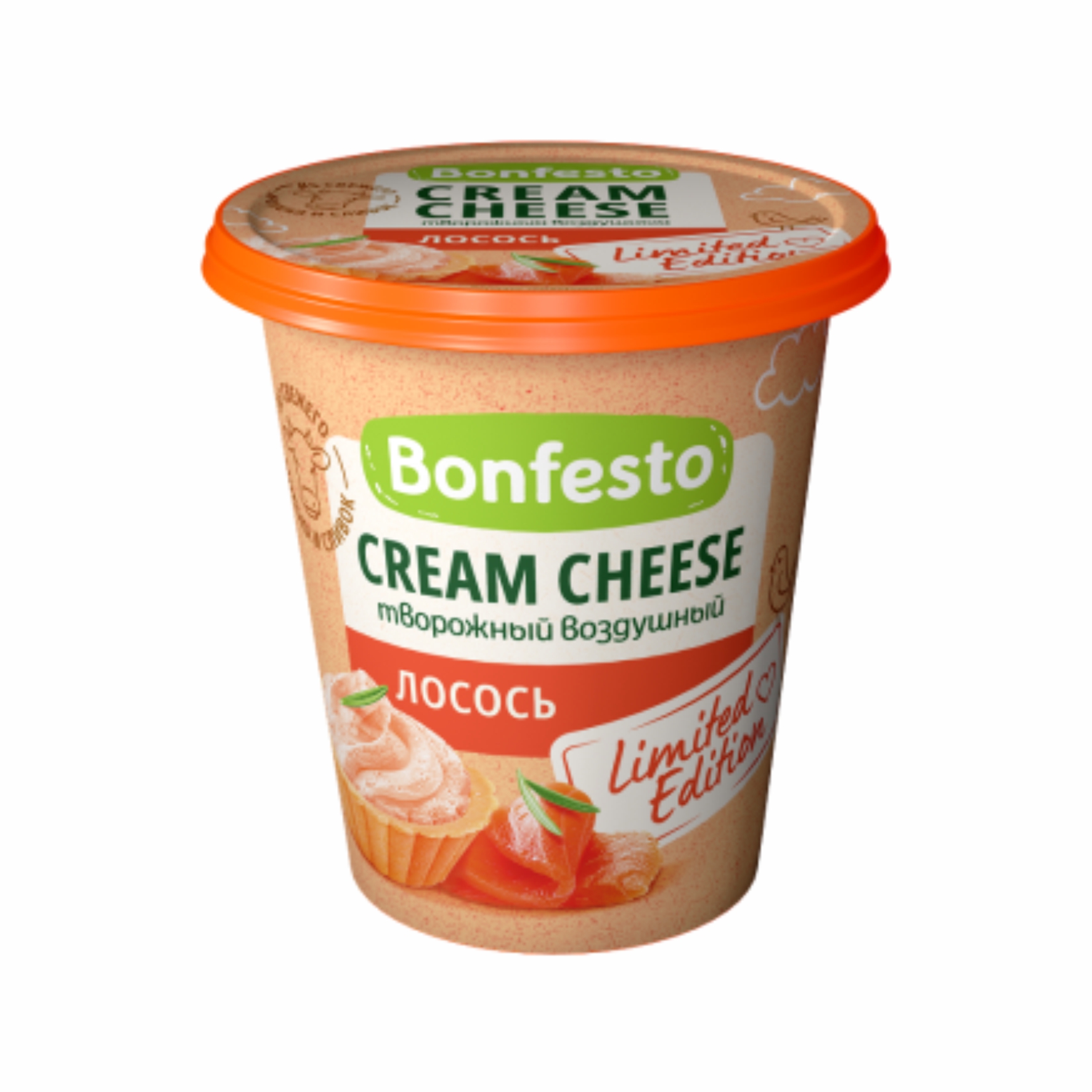 Сыр творожный воздушный Кремчиз Лосось Bonfesto 65% 125гр 1/8 Беларусь