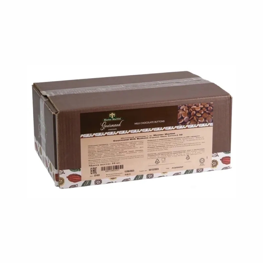 Шоколад молочный Гурман Милк Баттонс 32% Мастер Мартини таблетки 10кг Малайзия