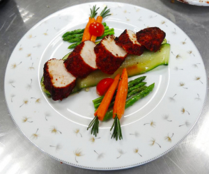 Рецепт максимально простой с прекрасным результатом: филе индейки панируется в сухом соусе «Наполи», который дает яркий аромат помидоров и насыщенный цвет, и отправляется в духовку при температуре 200 ˚С на 15 минут. В качестве гарнира используются свежие овощи (морковь, цуккини, брокколи и т.д.), которые обжариваются на оливковом масле.