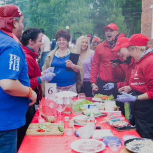 5 июля, в прекрасную дождливую субботу, в парк-отеле "Бурдугуз" прошел фестиваль шашлыков среди любительских команд. Компания "Пятая Армия" внесла свой вклад самым необходимым - стейками из свиной шейки и семги. Мероприятие прошло весело. Русскому человеку дождь не помеха, да и он скоро кончился и, как в любую субботу, появилось ласковое солнышко. На фоне переменчивых метеорологических явлений семь команд представили себя кто как мог, а могли, надо сказать, очень креативно: пели и танцевали в духе лучших голливудских мьюзиклов!